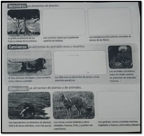 alimentan estos animales y escribí debajo de cada uno si es herbívoro,